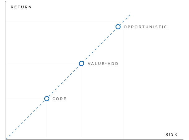 Each of the three primary categories of real estate investment strategies has its own risk and return characteristics.